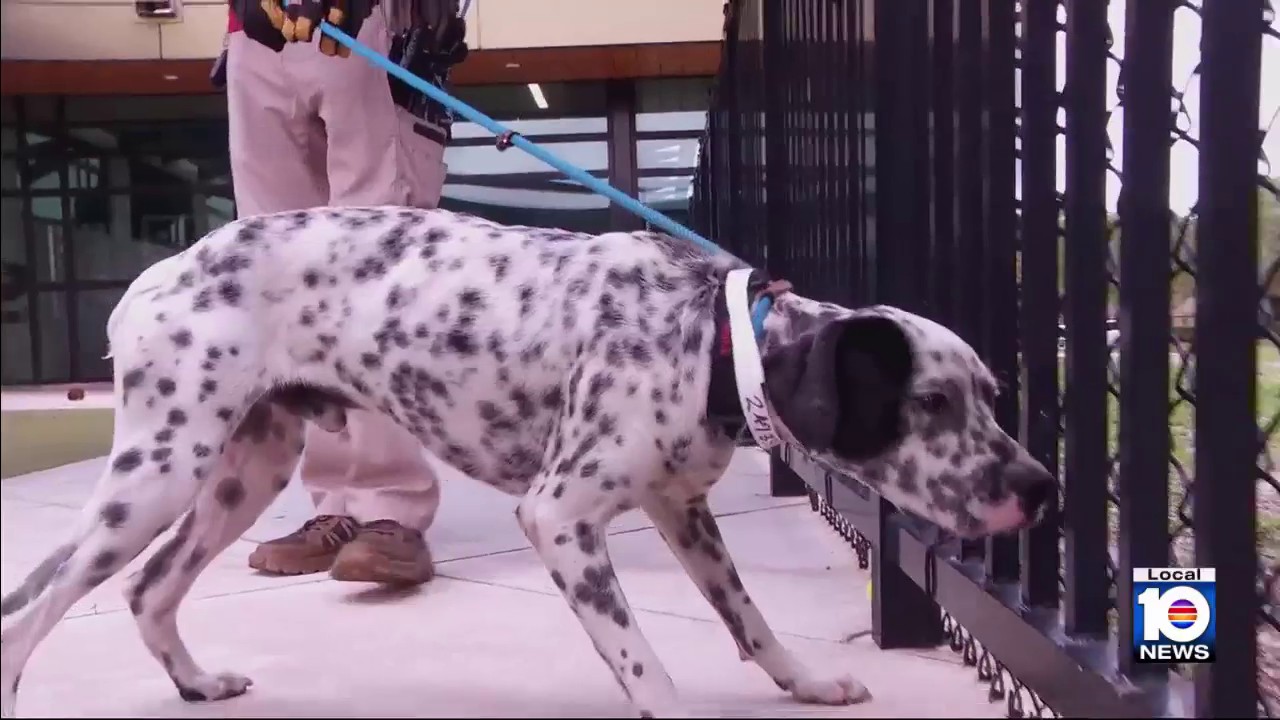 The dog, now named Scooter, was briefly taken to Pembroke Park police before being transferred to Broward Animal Care. Officials say the young dalmatian-pointer mix was intentionally left behind.